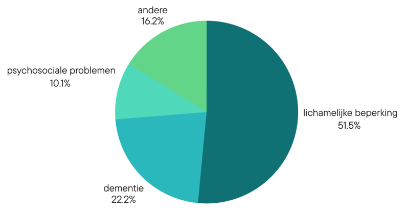 Risicofactoren o.a. lichamelijke beperkingen, dementie en psychosociale problemen omvatten